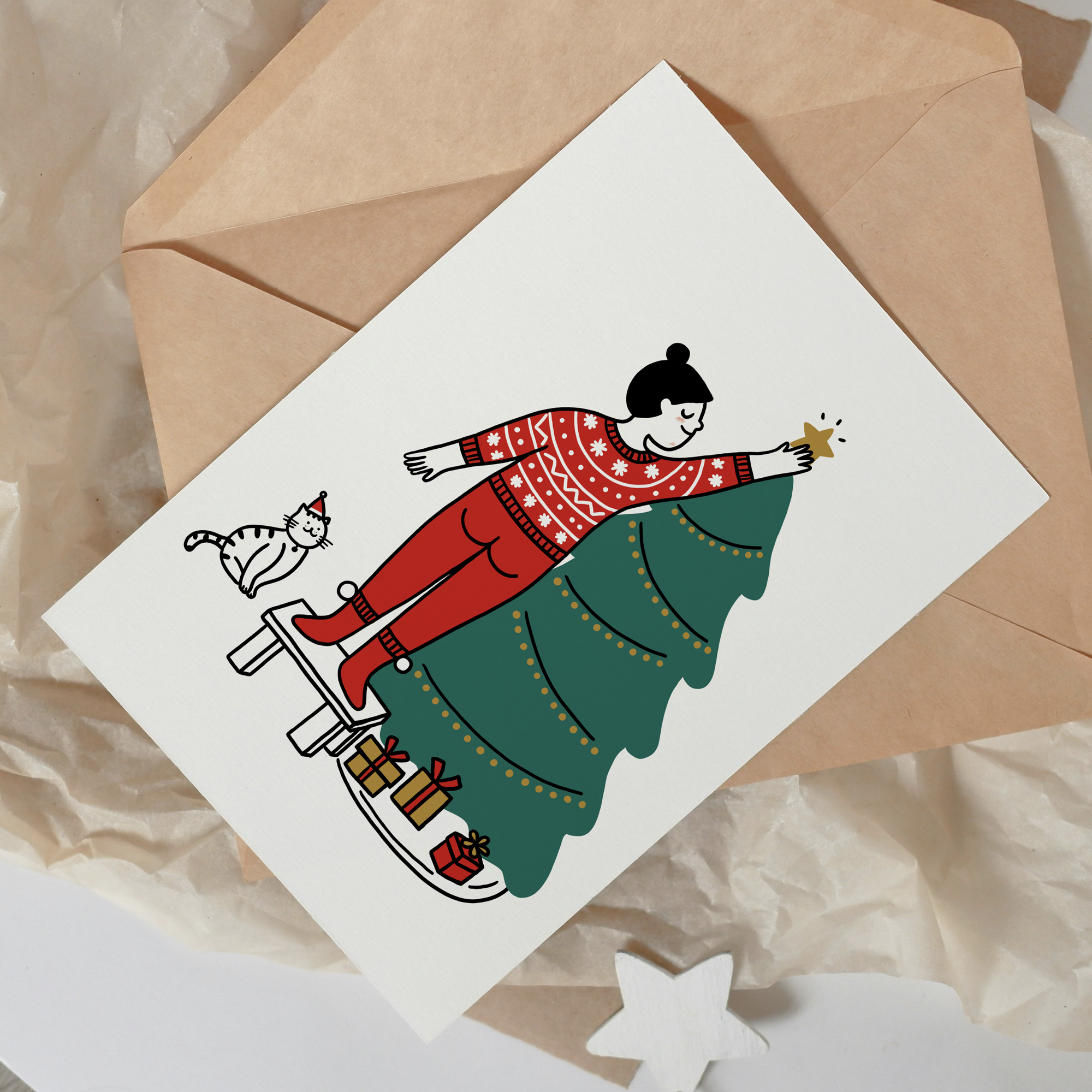 A Cozy Season These illustrations were created to celebrate the festive season—a time of twinkling trees, warm jumpers, homemade treats, and cozy kisses. Each scene is drawn in a playful, cheerful style for holiday cards and seasonal prints.